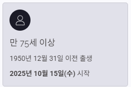 - 만 75세 이상 (1950년 12월 31일 이전 출생자): 2025년 10월 15일(수)부터 시작