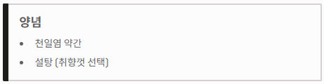 - 양념: 천일염 약간, 설탕 (취향껏 선택)