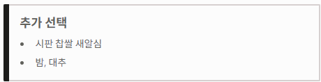 - 추가 선택: 시판 찹쌀 새알심, 밤, 대추
