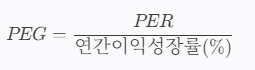- PEG < 1: 성장성에 비해 저평가되었을 가능성이 높음 (매우 매력적)